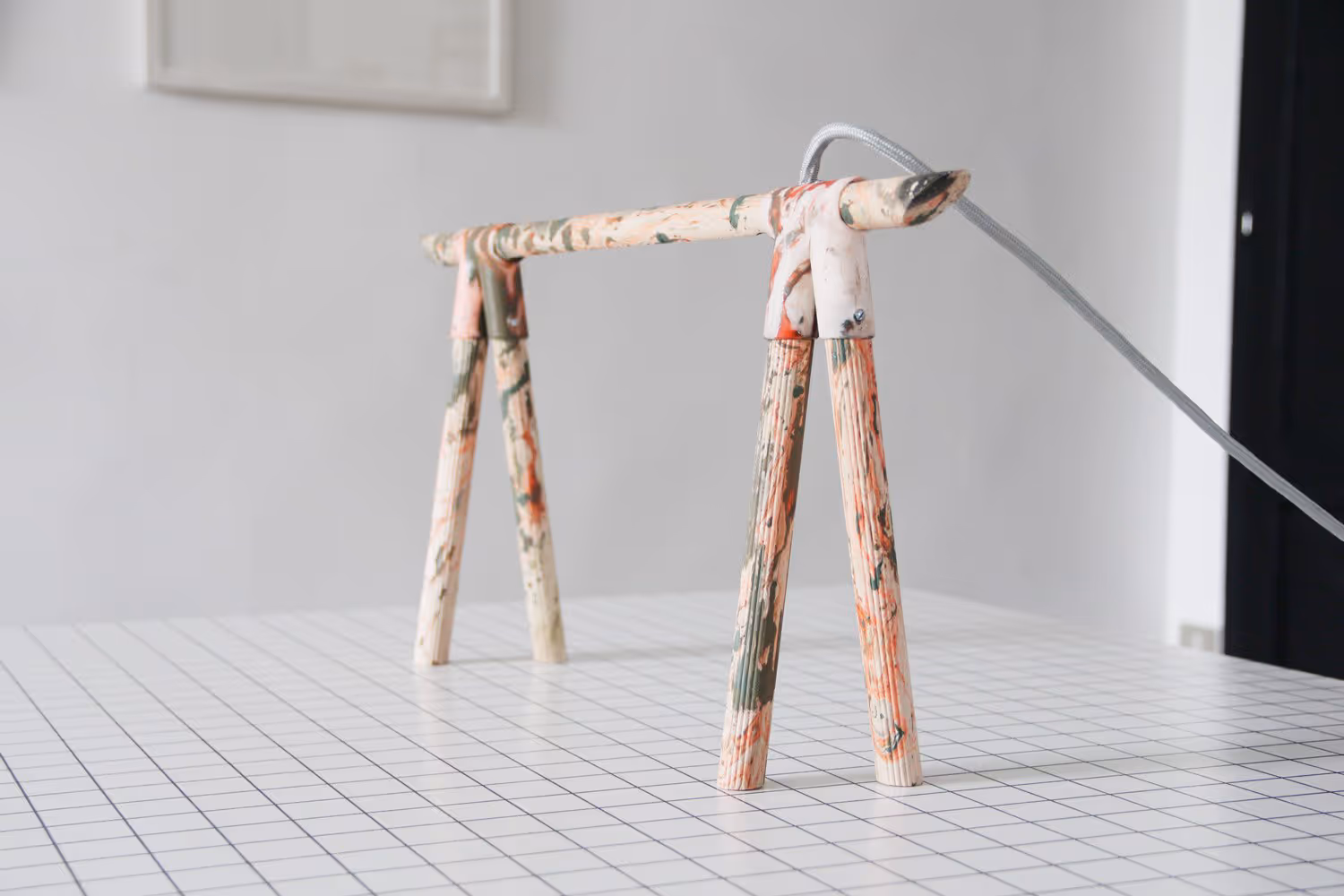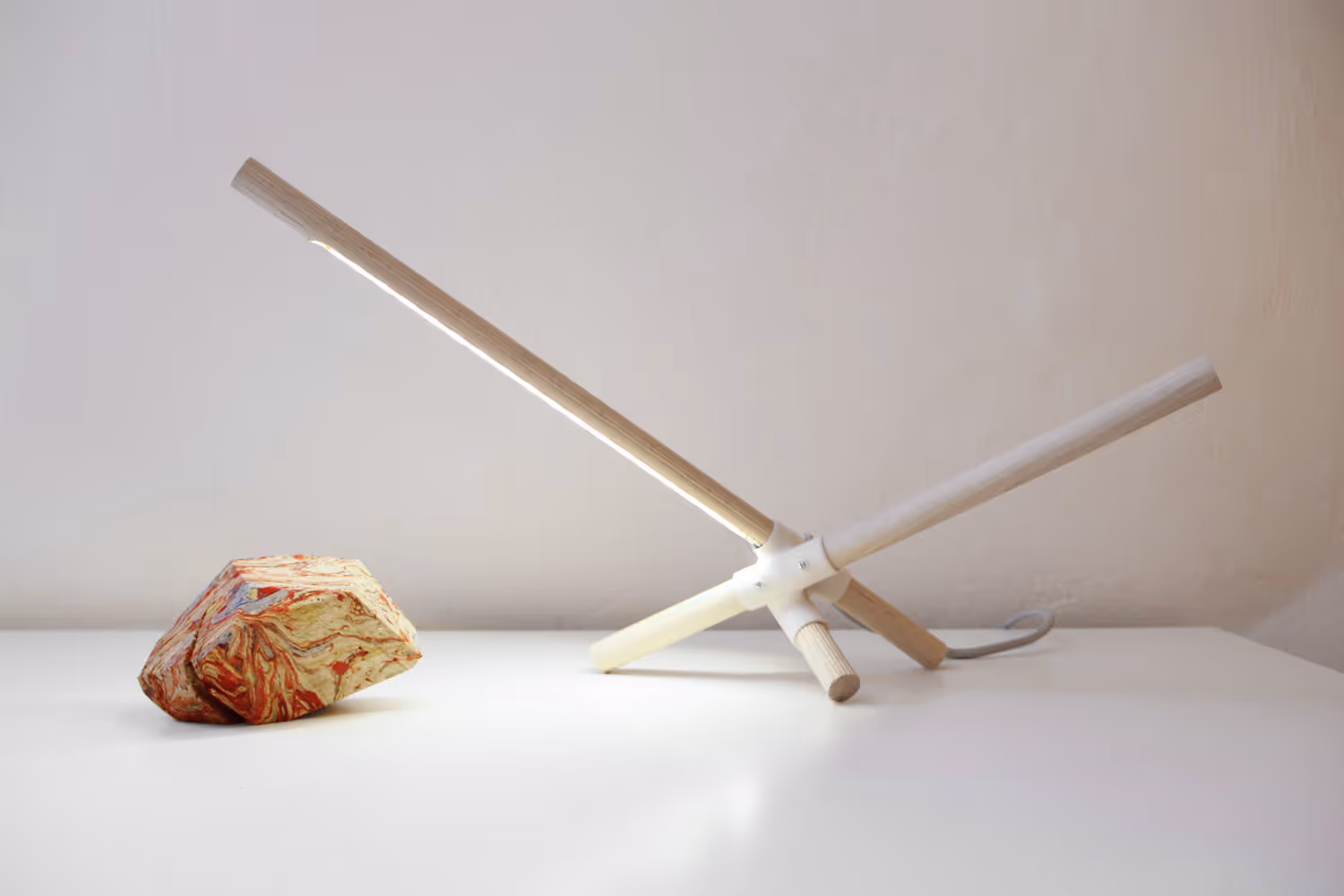 During a workshop session at Villa Lena’s woodworks in Tuscany, we worked on experimental projects including lamps and other functional decorative objects realized by combining 3D-printed parts and natural, locally-sourced raw materials.A distinctive marbling process was also used to color some elements of these objects.